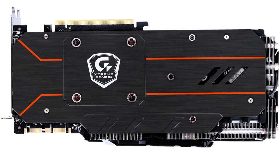The GIGABYTE GeForce GTX 1080 Xtreme Gaming requires 2x 8-PIN PCIe connectors to work. It also features a cool-looking back-plate with orange accents. It also features RGB LEDs like almost every other 1080s. Inside the box, the GIGABYTE GTX 1080 Xtreme Gaming is no slouch, it comes with a number of useful accessories such as a 2U-Spaced High Bandwidth SLI Bridge, a 5.25 inch front-panel bay that gives you 2x HDMI 2.0b ports and 2x USB 3.0 ports connected to the motherboard header.
