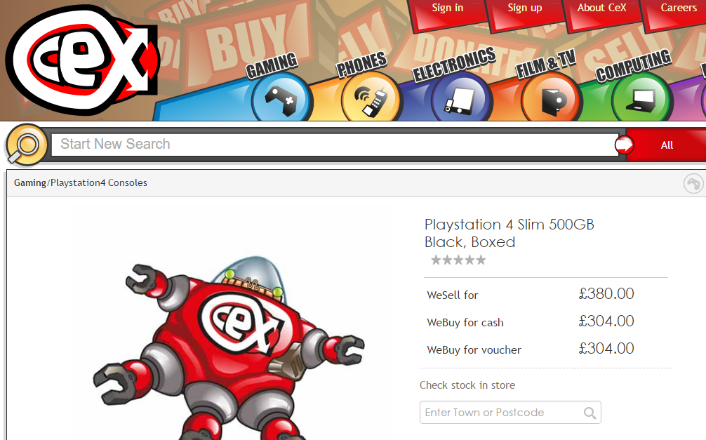 As you can see here, the price of PlayStation 4 Slim is listed on CEX for £380. If this price is real, then on the release day, the price of PlayStation 4 Slim would be £380 on CEX.