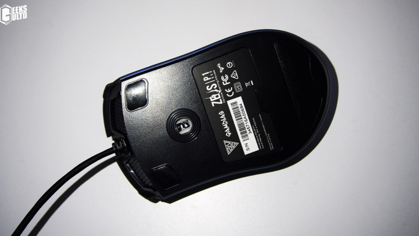 Lighting zones can be found on the scroll wheel of the mouse, the top portion of the mouse with the GAMDIAS logo and a single strip stretching from the right-side of the mouse going towards the left-side of the mouse.