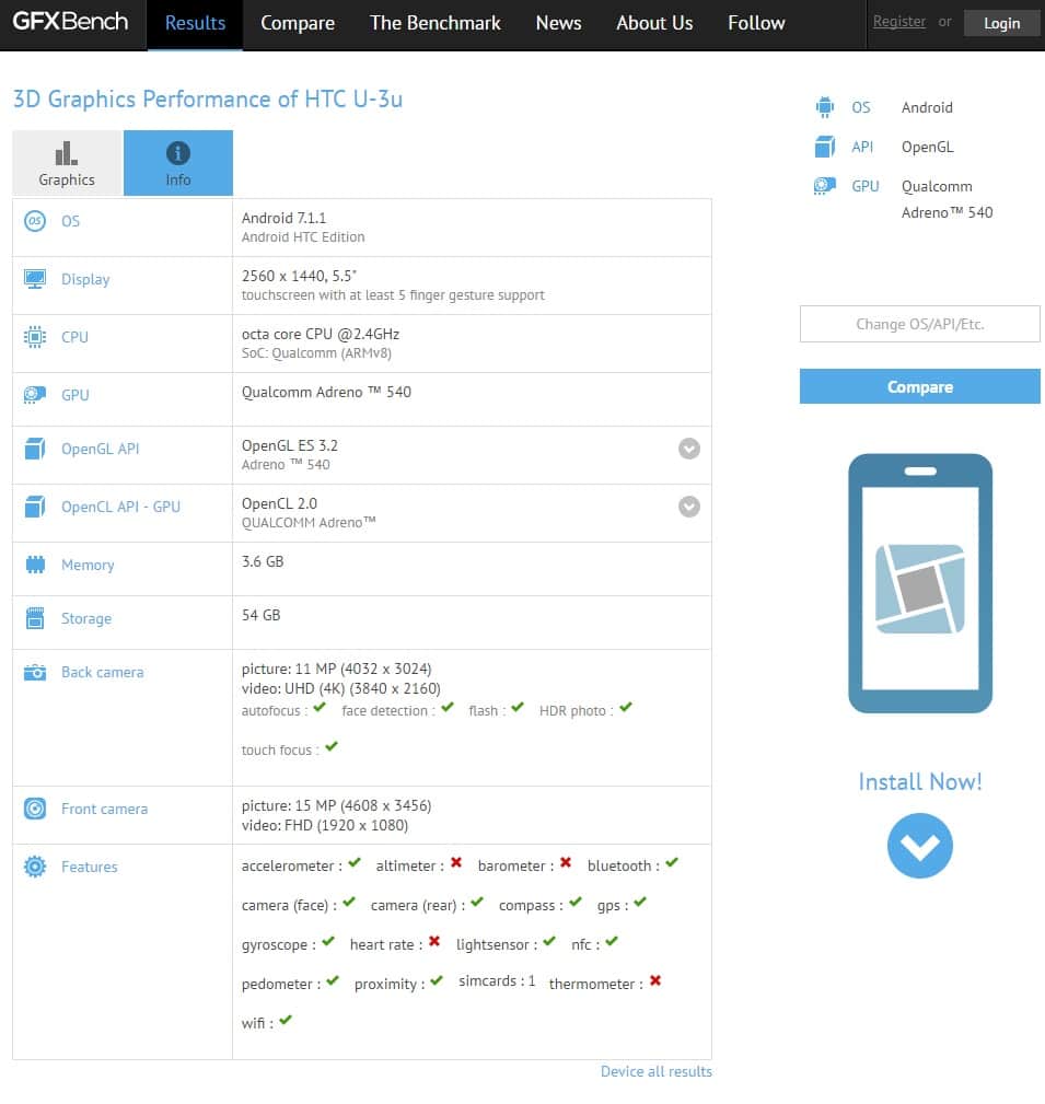 Recently, a leak on GeekBench reveals some information that could most probably be from the HTC U11. Touting specifications as high-end as many flagships nowadays are, it could certainly be the U11. Alleged specifications include a Snapdragon 835, 4GB of RAM, 64GB of Internal Storage, a 2K display along with the absence of a dual-camera setup. However, this is something worth noting, the specifications mentioned above suggest that the HTC U11 would come with a 15MP selfie camera and an 11MP rear camera. The front camera is capable of recording at 1080p. Meanwhile, the main camera is capable of recording videos upto 4K.