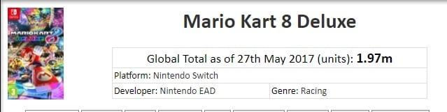 Among the first-party titles Nintendo released was Mario Kart 8 Deluxe. Launched not too long ago on the 28th of April this year, the Nintendo Switch along with Mario Kart 8 Deluxe sold very well. According to statistics provided by VGCharts, Mario Kart 8 Deluxe sales have almost reached 2M as of the 3rd of June 2017. That’s a bit more than a month, yet impressive. Here’s a breakdown of its regions.