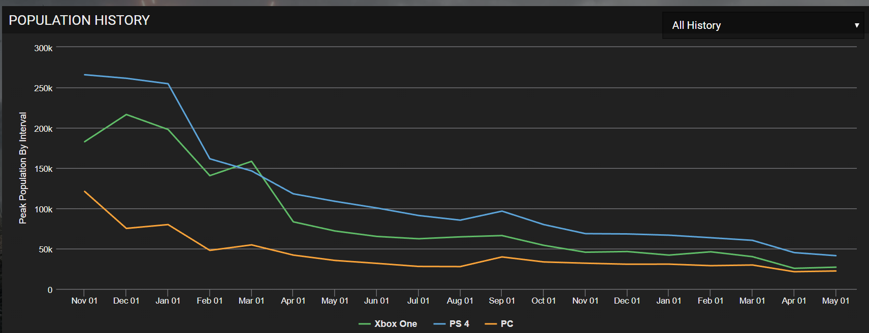 EA however, is very well aware of the player base dropping with Battlefield 1. Since its initial launch in 2016, the title has lost around 65% of its total player base and seems to be climbing down a steep hill. EA has made some excellent strides by launching a number of DLCs, but seems like as if it wasn’t enough. Based off of the stats recorded by Battlefield tracker, at launch, Battlefield 1 had amassed an audience of over 256K players that now sits at around 41k, and that’s PS4 gamers only. If we have a look at PS4, Xbox One and PC player bases combined, the game has dropped from 569k to 90k since its launch to date.