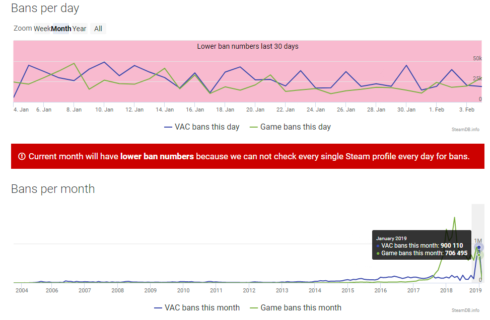 Counterstrike is known for cheaters, Valve despite various attempts to provide a clean and entertaining environment failed miserably which led enthusiasts to explore unofficial servers. That being said, the issue caused by tonnes of cheaters trying to hack the game was only to increase once the game’s price was reduced to zero. This month’s VAC ban and game ban reports are revealed and the numbers seem to grow at an exponential rate. Over 900 thousand various steam accounts were VAC banned just this month and that is not to count the 700+ thousand game banned accounts. Despite all these efforts, “Non-Prime” matchmaking remains unplayable with upwards of 3 cheaters every game.