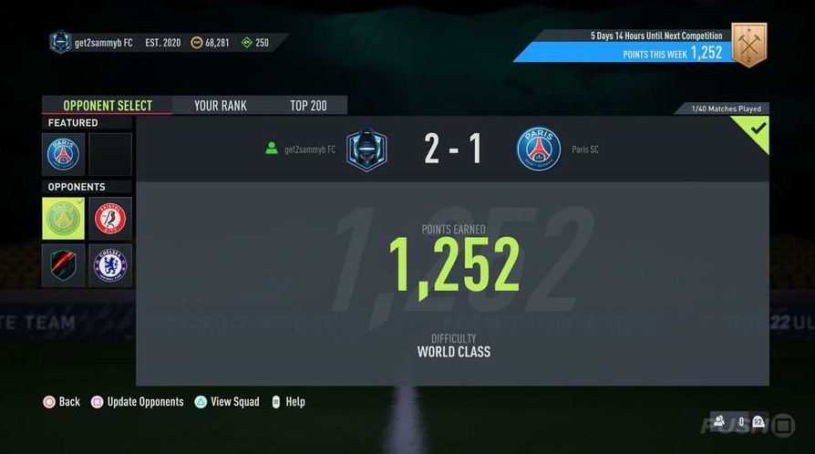 With Squad Battles, you can play up to 40 matches a week to collect Battle Points, which are subsequently used to decide your overall place on the leaderboard. The more Battle Points you acquire every match by playing against more challenging opponents, the higher your Rank will be. Rewards for Squad Battles will be based on your ranking towards the end of the week.