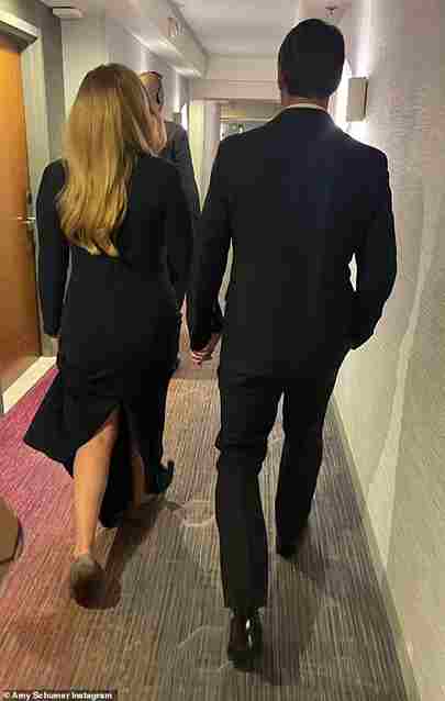 Backstage pass: Schumer makes his way to the stage through the corridors.
