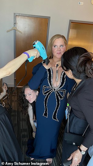 Amy Schumer posed in her underpants as she gives the public a behind-the-scenes glimpse at the Academy Awards.
