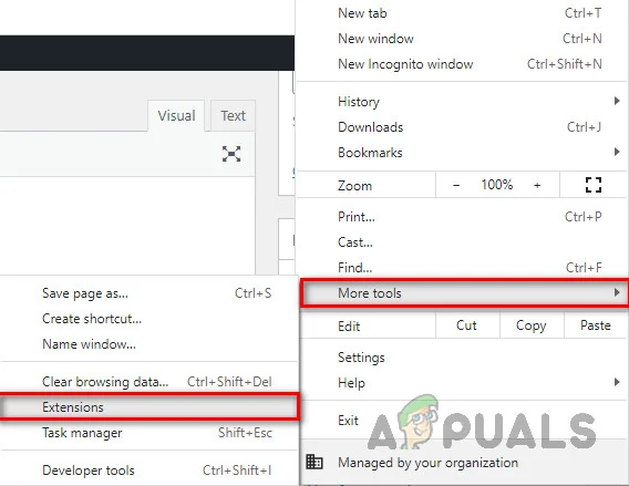 Launch your Chrome browser and click the three-dot menu icon, then More Tools, and finally Extensions from the menu.