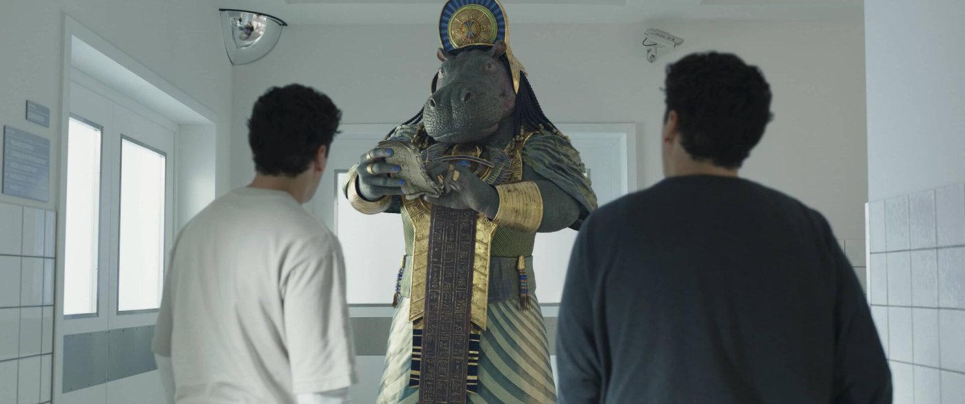 Marc is back with Steven screaming in front of a screaming Taweret after being injected with a tranquilizer. Taweret inquires as to whether they are twins, perplexed by the two, and she clarifies that they did indeed die. Steven instantly agrees that this is the Egyptian underworld when Taweret pulls out her cue cards to properly welcome them to “the realm of the Duat.”