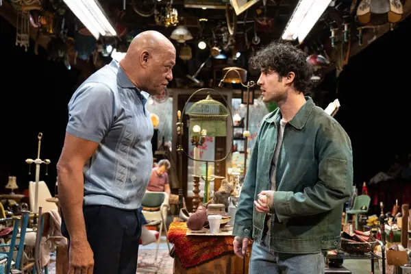 The revival of David Mamet’s play about capitalism in a junk shop features Sam Rockwell, Laurence Fishburne, and Darren Criss in a powerful performance.