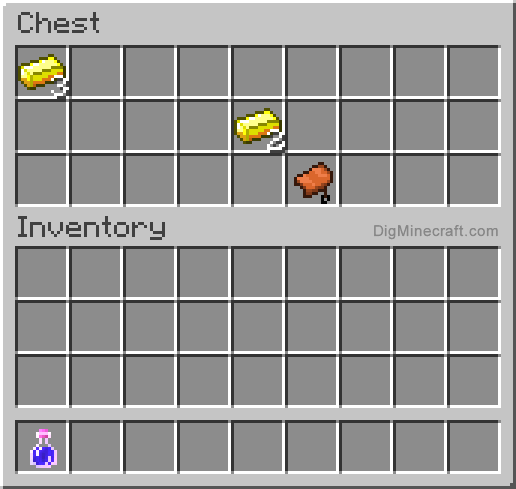 We found a saddle and a gold ingot in this case. In your inventory, place the saddle.
