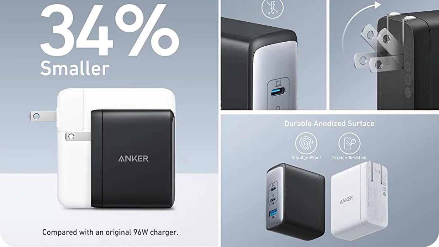 The New Features of Anker’s 100w Gan Charger Smaller and Lighter Than Apple’s 96w Charger, With Three Usb Ports Instead of Two.