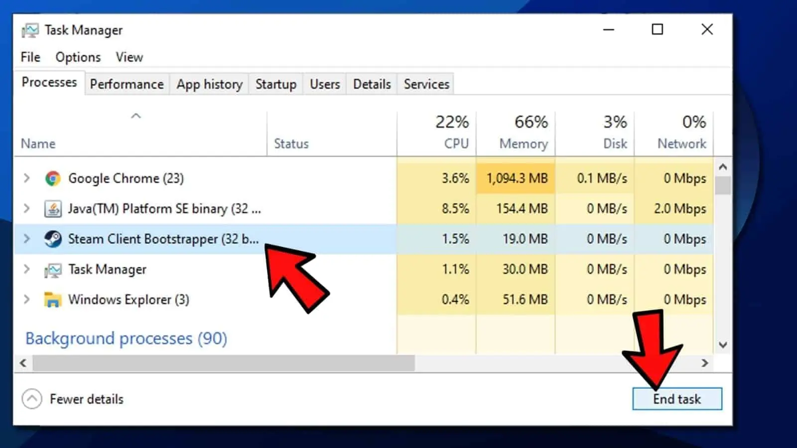 Before launching the Steam client itself, you should first use Task Manager to end all of Steam’s running tasks. Only then will your Steam client be able to open normally. To do so: