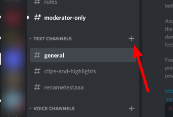 Select “Text Channels” from the drop-down menu by clicking the + sign.