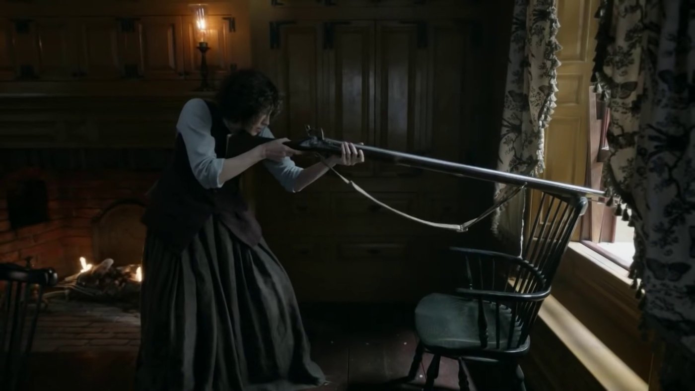 Ian returns from his hunting expedition to discover Lizzie sobbing about Claire and Jamie being kidnapped by the mafia. Ian surprises Jamie at one of the campgrounds along the trip, telling him that if they wish to flee, he has troops hiding in the bushes and adjacent mountains. Jamie tells Ian to back off because Brown has too many allies who would be interested in claiming the reward money if he was captured. The rhythm of the episode improves after this sequence, as viewers are aware that there will be another battle or conflict scene ahead.