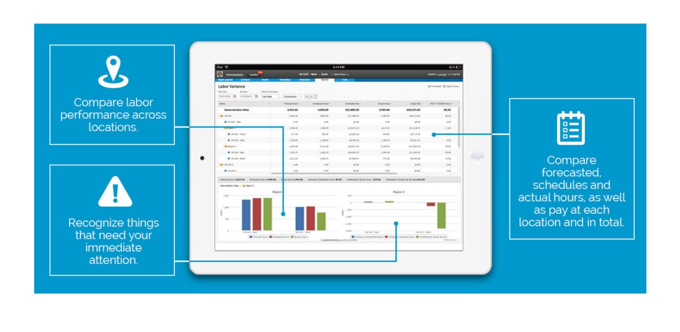 The HotSchedules software package has more than 2 million customers and is built for businesses of all sizes, from those with only five employees to those with hundreds of locations, as well as franchises.