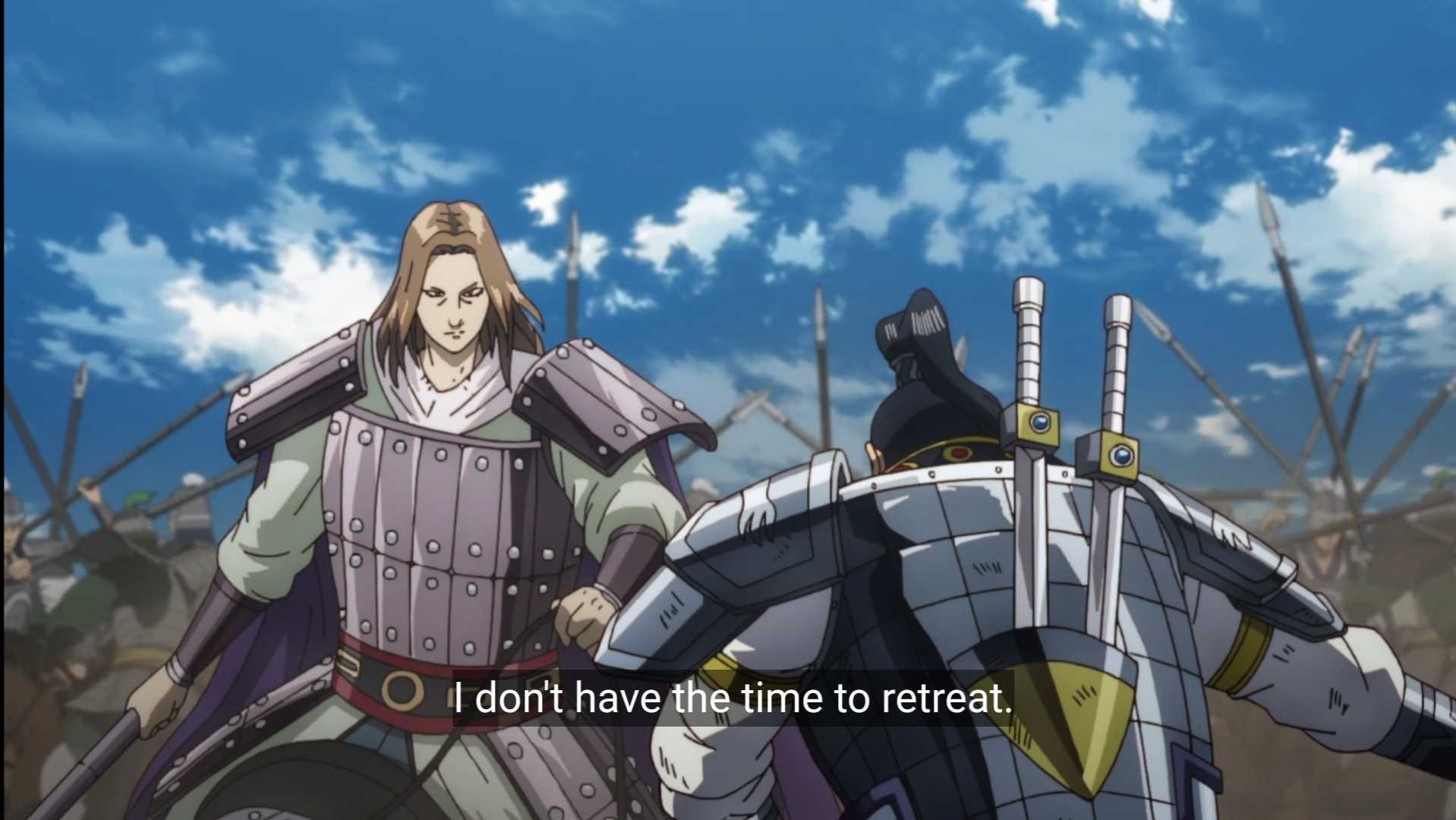 Earl Shi opens the episode by riding his horse and slaughtering every adversary in his path. Someone appears out of nowhere and expresses admiration for Earl Shi’s spear skills. This guy is revealed to be Ou Hon, the Gyoku Hou Force’s captain. Ou Hon is ready to meet Earl Shi again after a near-fatal encounter with the famed spear-bearer warrior a few episodes ago. Ou Hon swears to overcome Earl Shi this time.
