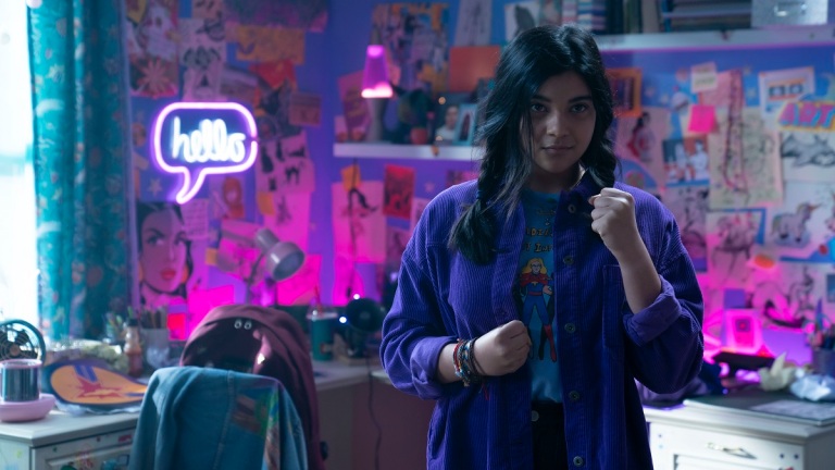 Ms. Marvel was quickly established as a fan favourite by Adil El Arbi and Bilall Fallah. The series’ pilot, “Generation Why,” is a funny, heartfelt teen dramedy that just so happens to have comic book elements. It doesn’t feel like a straightforward comic book action series. It combines the visual style of Scott Pilgrim with the storytelling approach of Freaks and Geeks. Adil & Bilall added a lot of cinematic embellishments, including frantic montages, dynamic camera movements a la Goodfellas, and animation overlaid on live-action material.