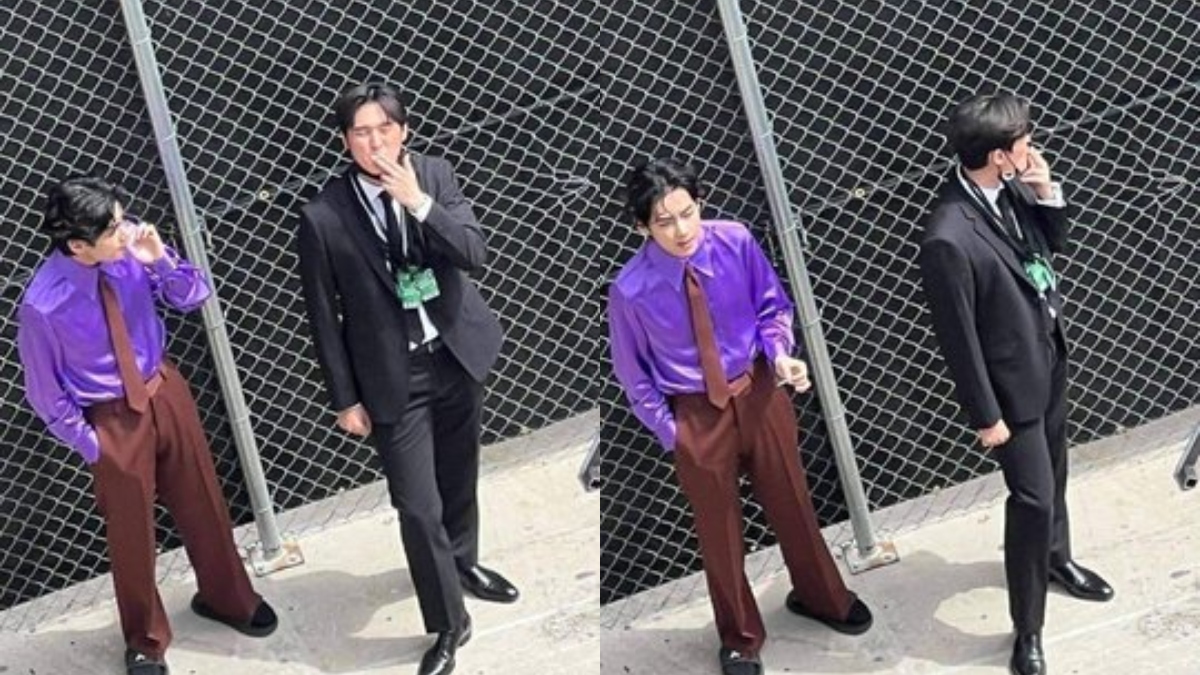 It was very clear that as soon as V reached the spot the manager started following him and stopped him. The latter half of the conversation generally focuses on how the BTS members should pose for the interviews. V intentionally pushes his manager away and then lower downs his mask so that the picture can be taken very clearly.