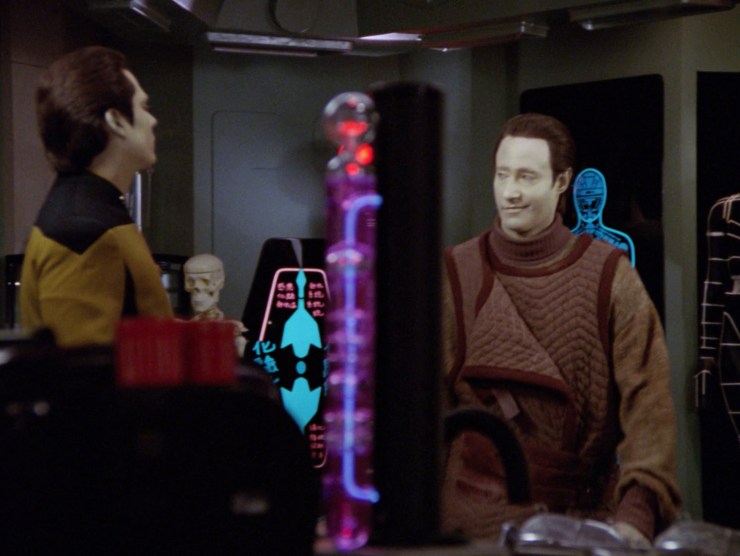 In the story, Beverly Crusher and the Enterprise-D crew discovered and revived Lore. There follow some genuinely iconic Lore pranks. He swiftly reverts to his evil ways, which results in a twinning exchange a la telenovela between him and Data.