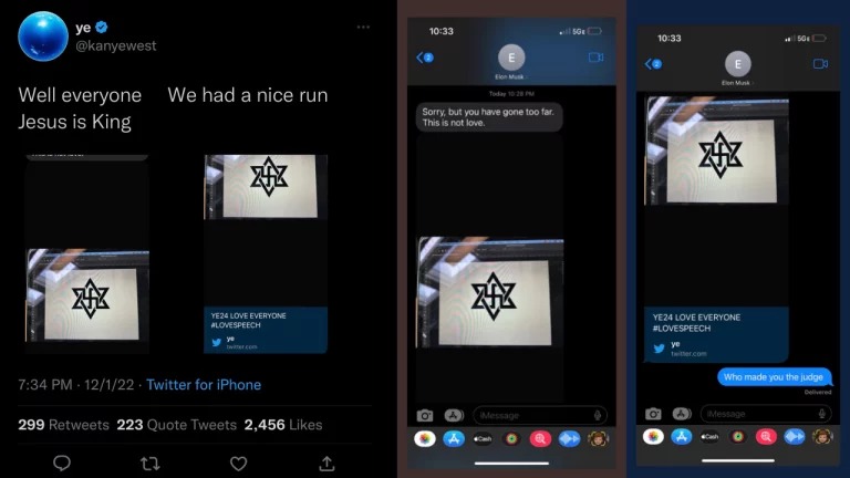 The rapper shared a screenshot of his text conversation with the billionaire before he was suspended. Elon Musk sent Kanye West a text saying, “Sorry, but you have gone too far.” after he tweeted a Swastika. This is not affection.