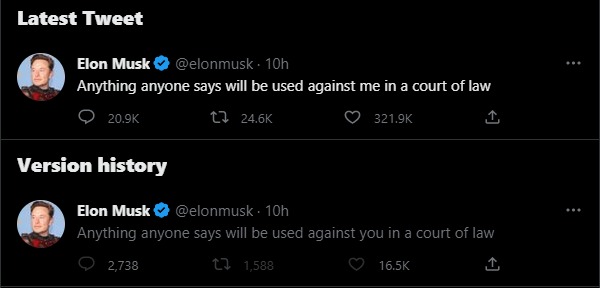 Following their brief disagreement on the social media platform, billionaire Elon Musk, CEO of Twitter, recently tweeted something that appears to be a dig at rapper Kanye West. Musk wrote, “Anything anyone says will be used against you in a court of law,” but later changed his tweet to read, “Anything anyone says will be used against me in a court of law.” In his tweets, it appears as though the billionaire is making fun of the rapper.