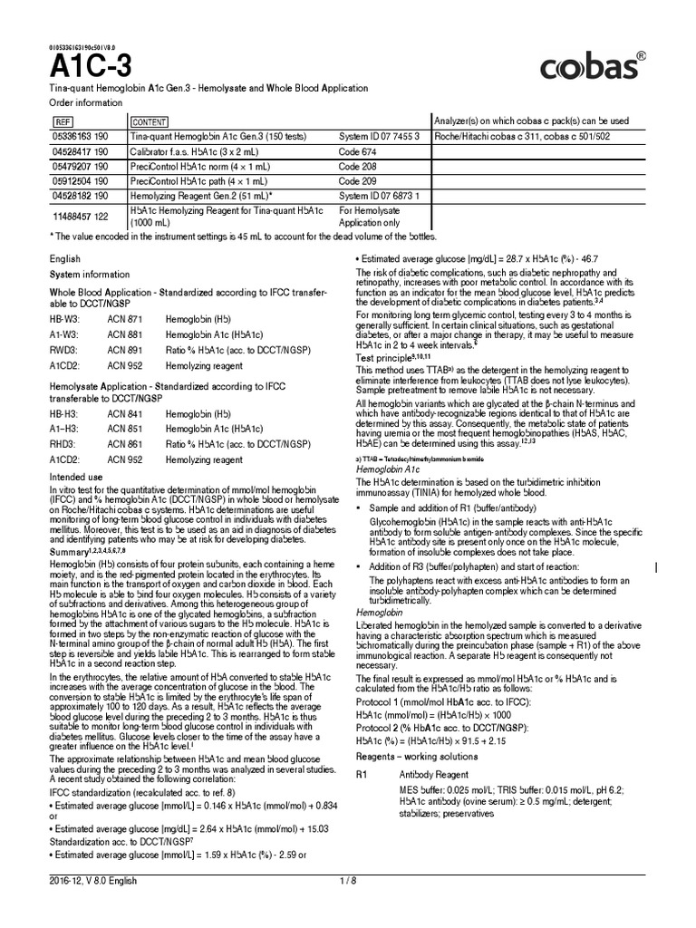 1. The Cobas c311 analyzer will provide a numerical result indicating the patient’s HbA1c level