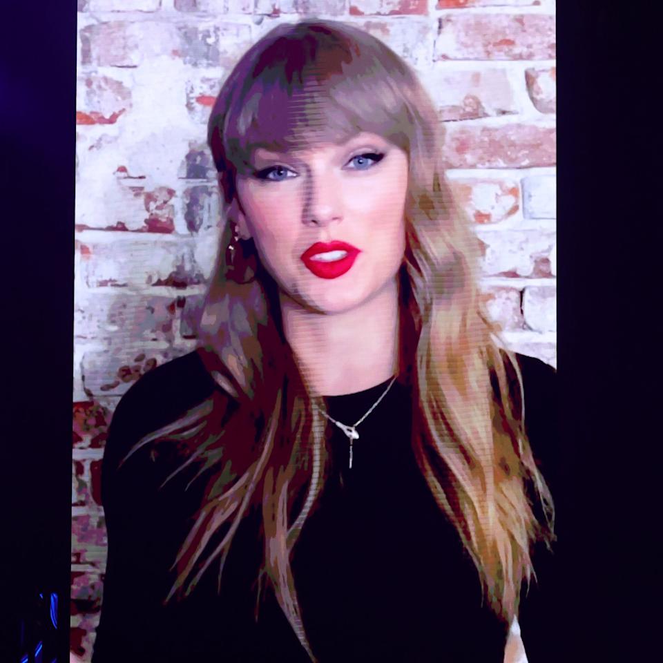 Taylor Swift appeared virtually at the 2025 iHeartRadio Music Awards to accept her trophy for “Tour of the Century.” | Credit: Getty Images