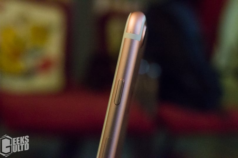 The Apple iPhone 7 is well-built with its blasted aluminum body and it feels great in the hand. The Rose Gold version that we have does attract a little bit of fingerprints on the back but it’s not that bad. The volume buttons are nice and clicky and they’re not concave anymore. This helps in the water-resistance capability of the phone and it is not a weak spot for bends now, as it was in the previous-gen iPhones.
