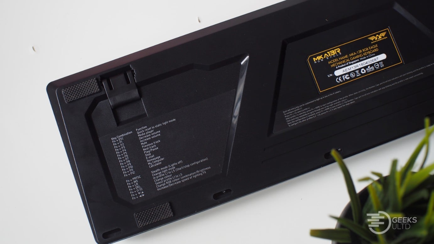 Around the back of the keyboard you’ll also find four thick rubber feet that prevent the keyboard from slipping. These rubber feet also add to the whole assuring experience telling us that Armageddon has stepped up their quality game, that’s for sure.