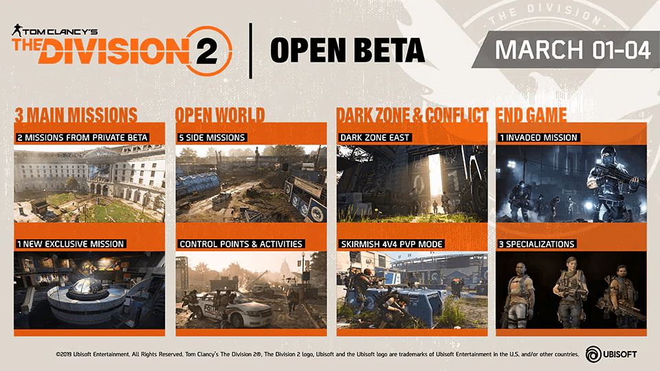 With Ubisoft coming out with new games this year like the remaster for Assassins Creed III, Trials rising, Far Cry: New Dawn, and probably one of the most awaited games of this year, Tom Clancy’s The Division 2. The Open Beta has a lot to offer and will keep the players occupied for the duration of the Beta. As for the details on the Open Beta, they can be found on their news post as below: