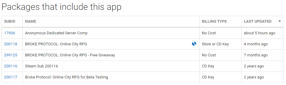 A more plausible explanation could be a case of a botting attack. The game website has the tools and a guide available so you can set up your own server. If we go to the games page on steamdb and take a look at the packages tab, you will notice there is a new branch that was last updated 5 hours ago, perhaps even created. The branch has the name Anonymous Dedicated Server Comp with the Billing Type set to No Cost, meaning it’s a branch that is free. Perhaps someone managed to create a Dedicated Server alongside a new branch of the game and then botted the server.